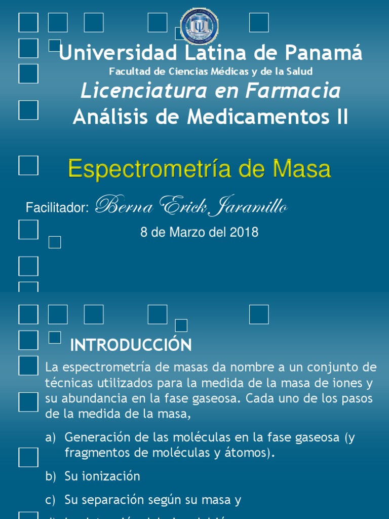 Espectrometria De Masas! Mass spectrometry is used in many different fields and is applied to pure samples as well as complex mixtures.